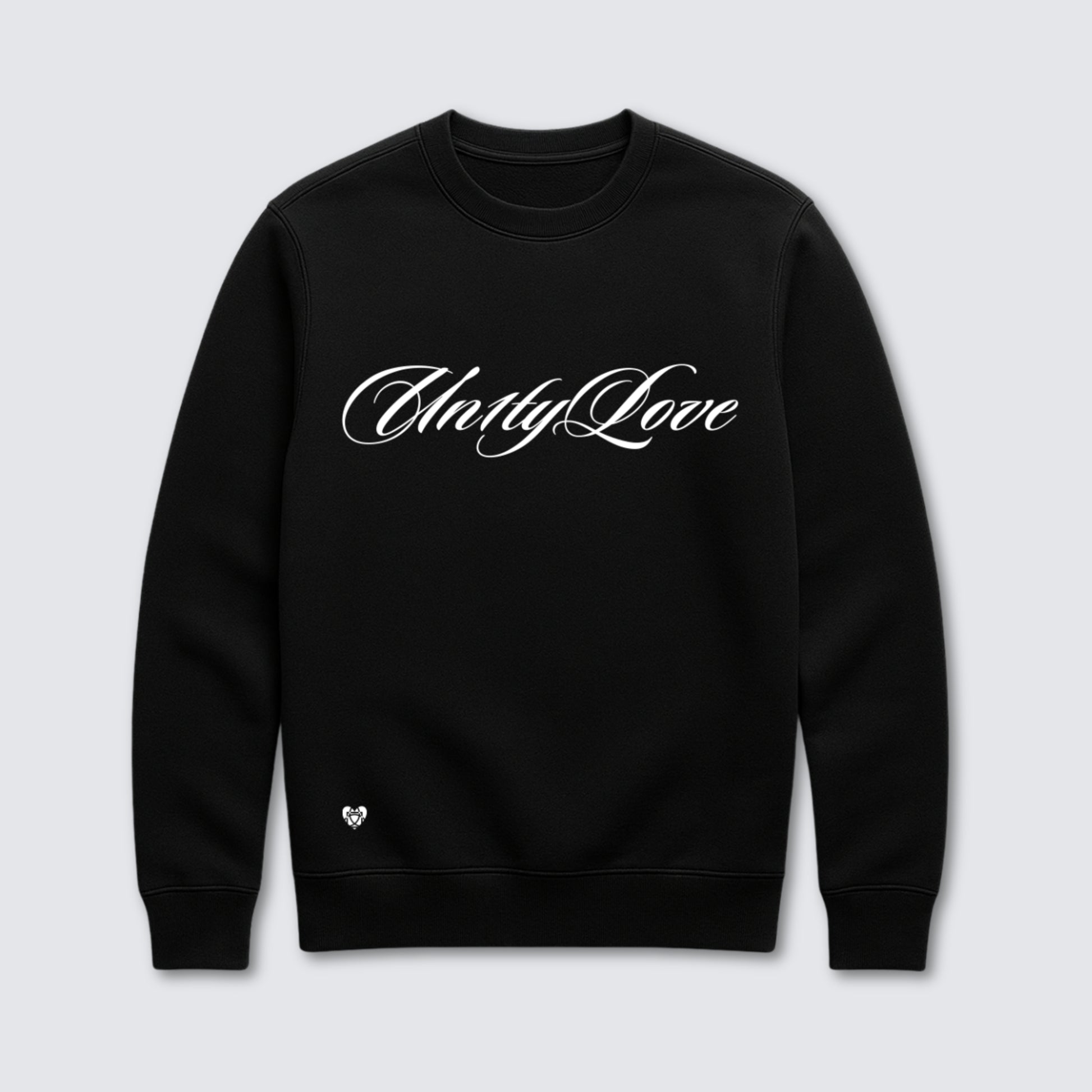 Heavyweight crewneck sweatshirt in royal blue. Classic set-in sleeves with ribbed collar, cuffs, and hem. Features the Un1tyLove™ logo across the chest, with our signature UL logo placed at the upper spine for a clean finish.